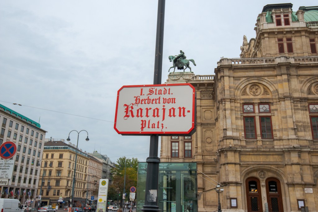 This morning we stepped out/under Vienna on the U-Bahn – still wearing K95 masks and made our way into the centre of the city at Karlsplatz right next to Vienna Opera and, of course, Herbert von Karajan Platz