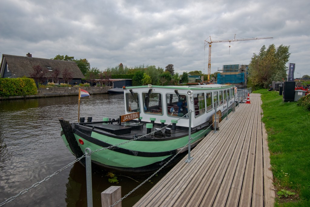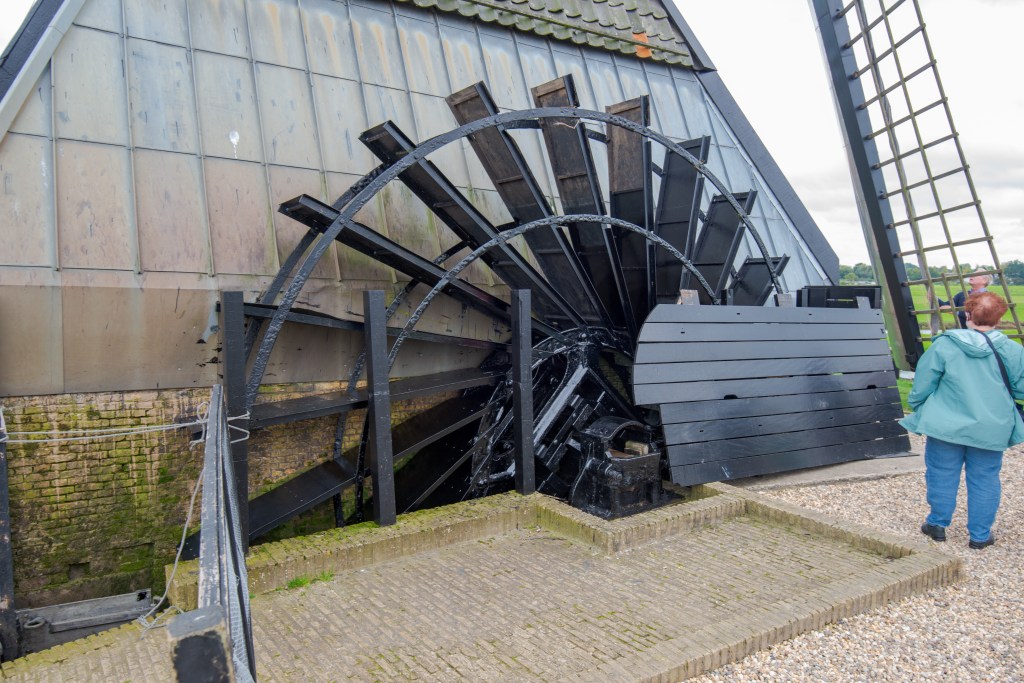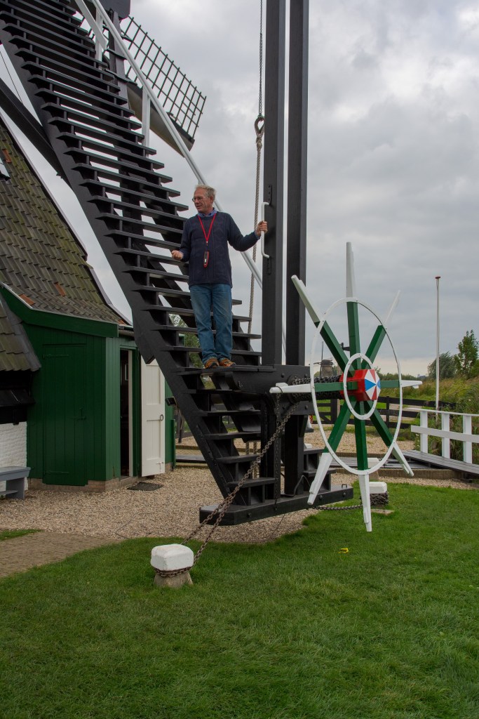 5 October – a birthday remembered – and after cruising the evening before from Köln and morning in the Rhine Delta Viking Vali docked at Kinderdijk – another UNESCO World Heritage site/cultural landscape. The locality is dotted with numerous working windmills – molen – of varying styles and sizes. Among the shore excursion options we chose a visit to a working post mill on a vintage 1896 barge, the Jantina, property of Viking cruises.