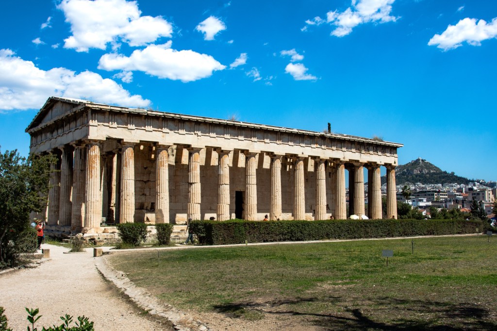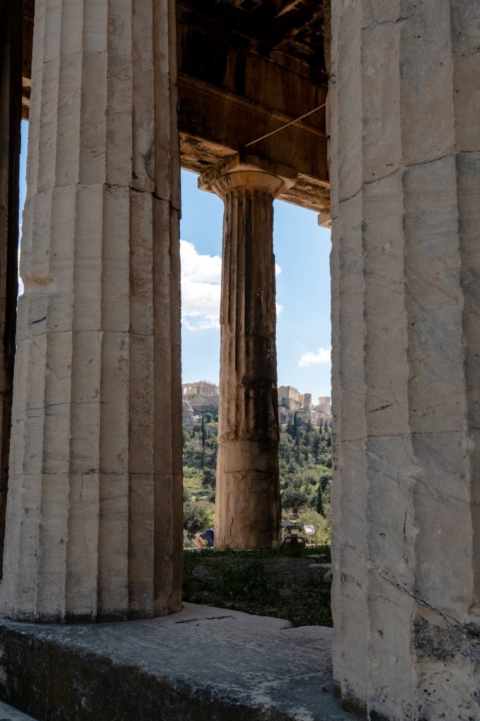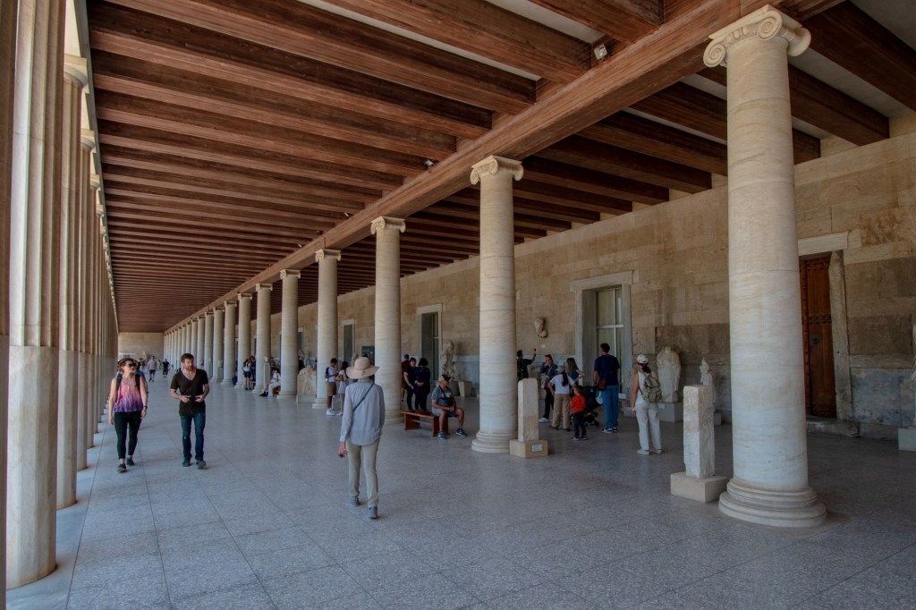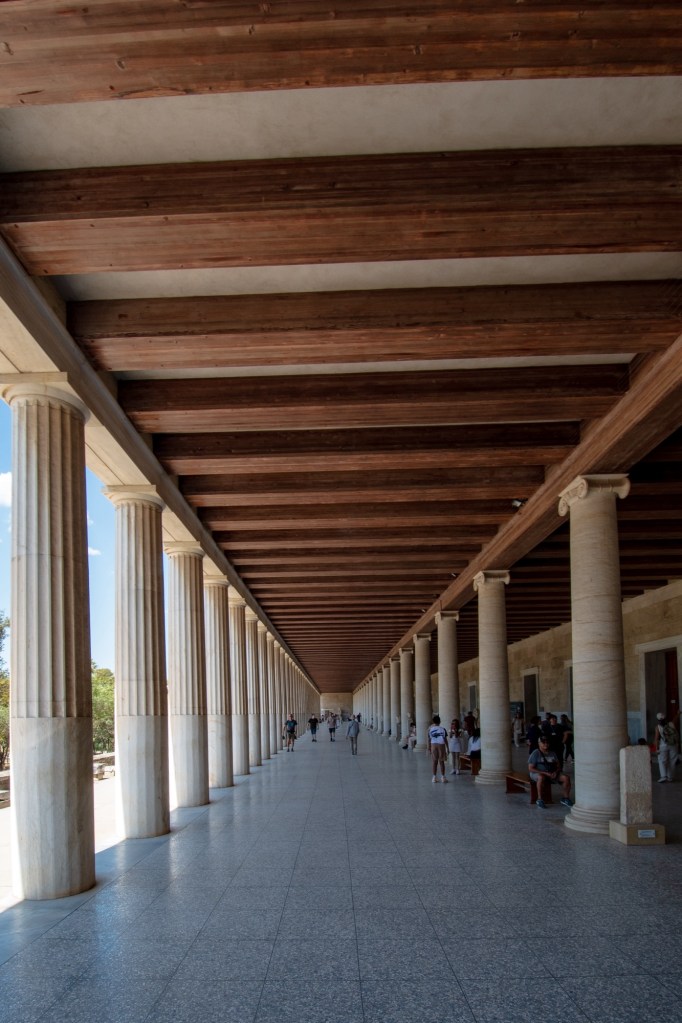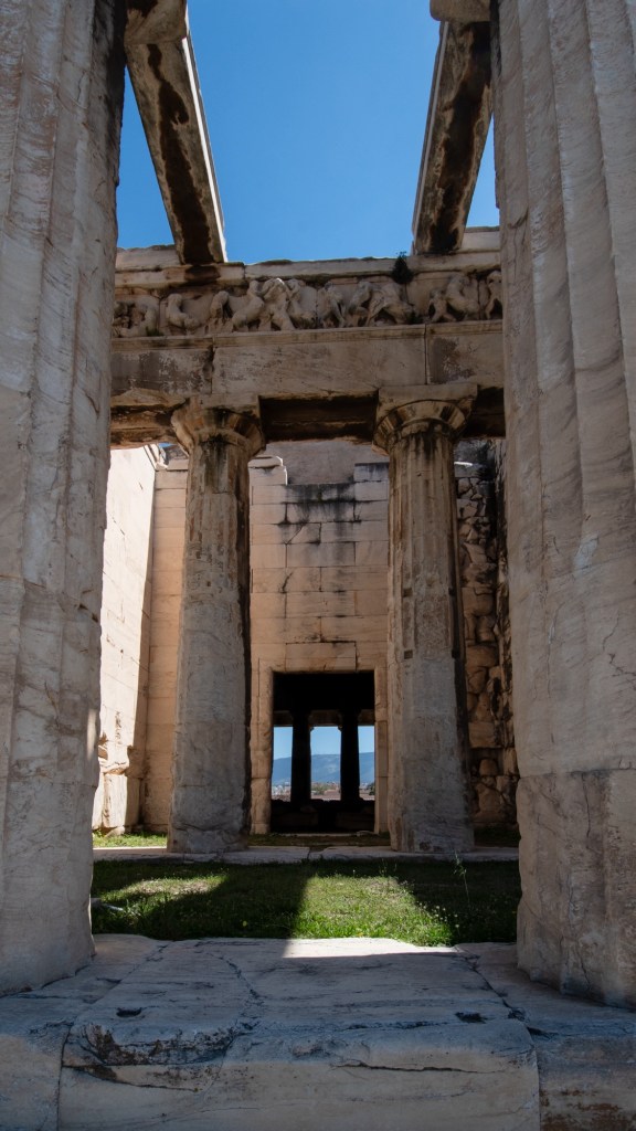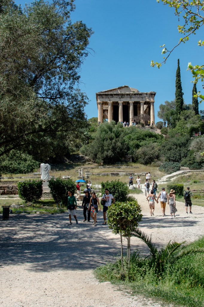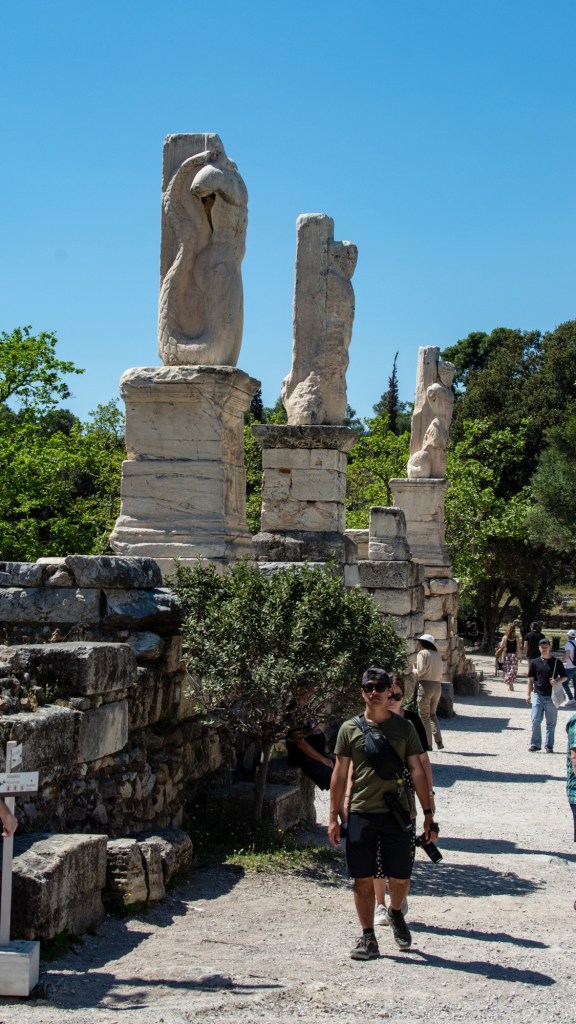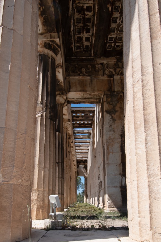 After a light lunch ha ha and a glass of wine we toddled off to the Ancient Agora of Athens, in Greek and Roman times a place of commerce, assembly and residential use. It was a relief to get away from the hustle and bustle of the city streets.