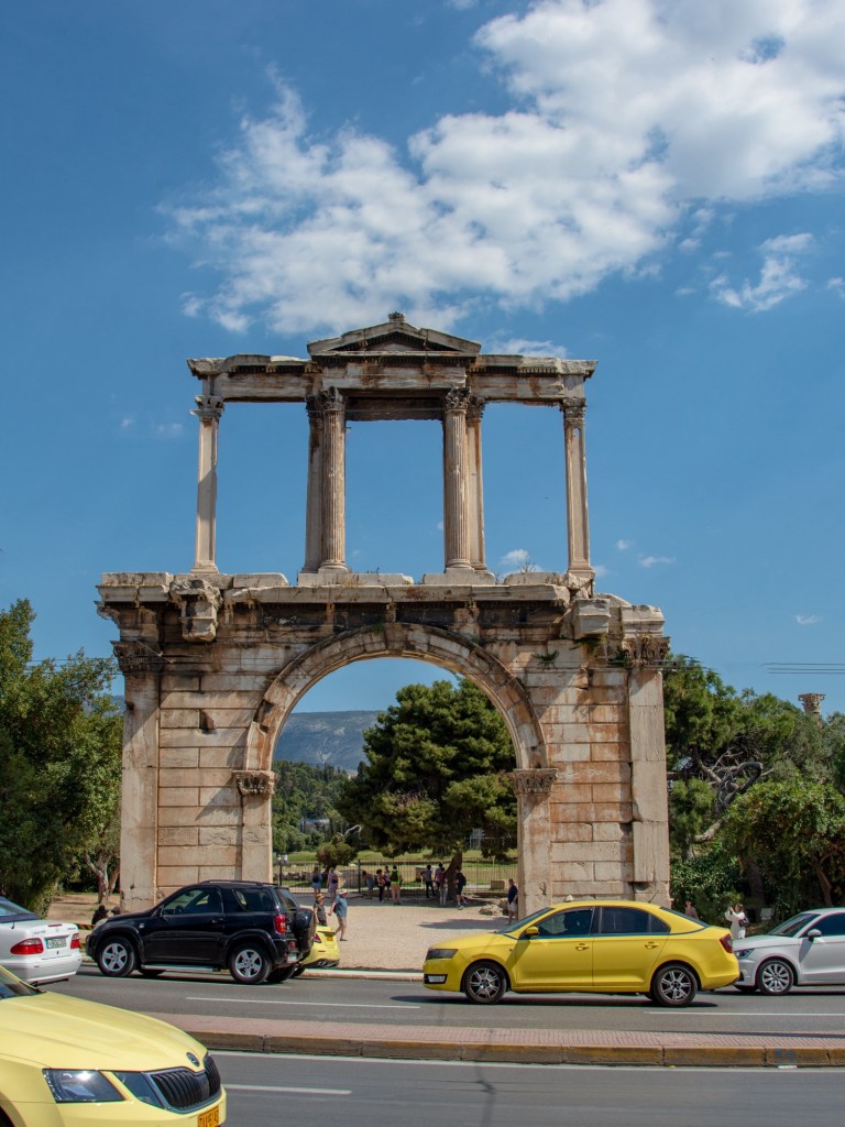 Conveniently the shuttle pickup was opposite the Arch of Hadrian, one Roman emperor when Greece was part of the Roman Empire.