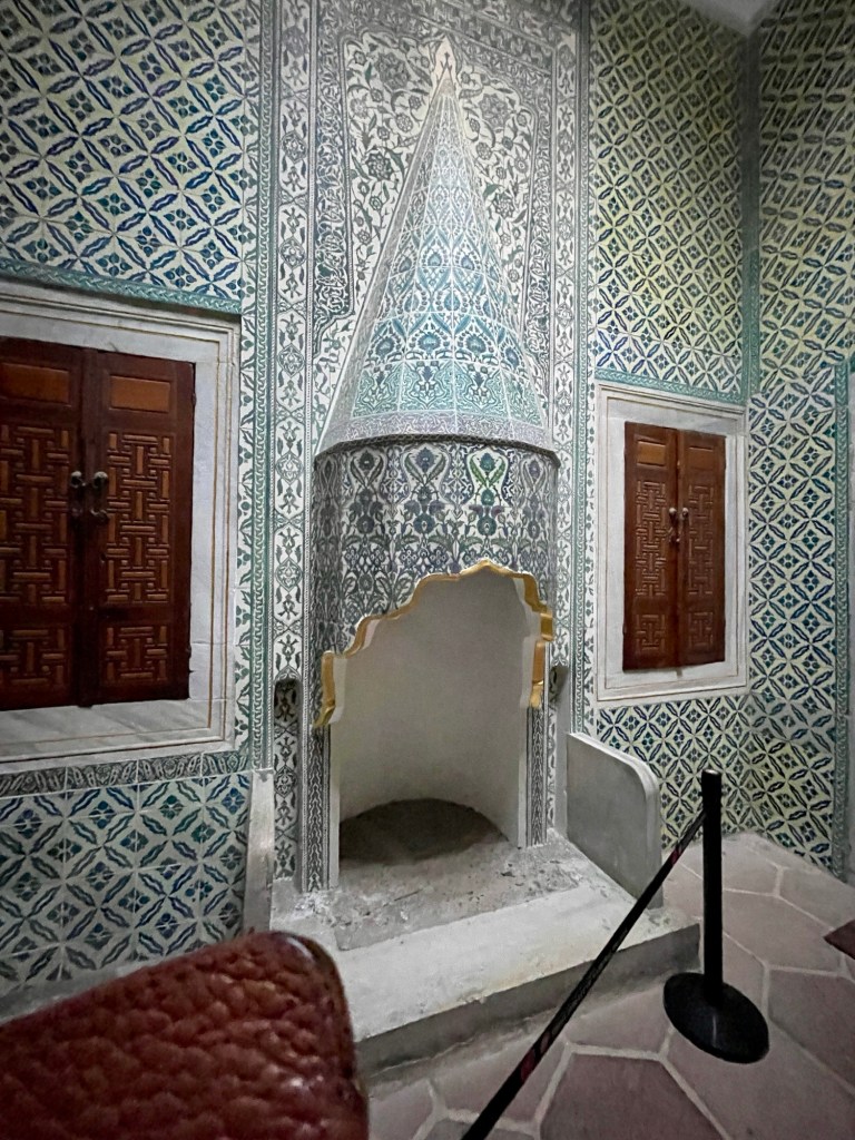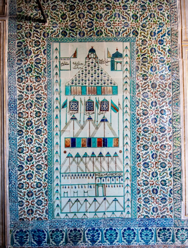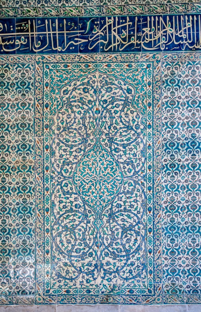 Just a few images of the magnificent tiles adorning various chambers – like Turkish rugs on the wall